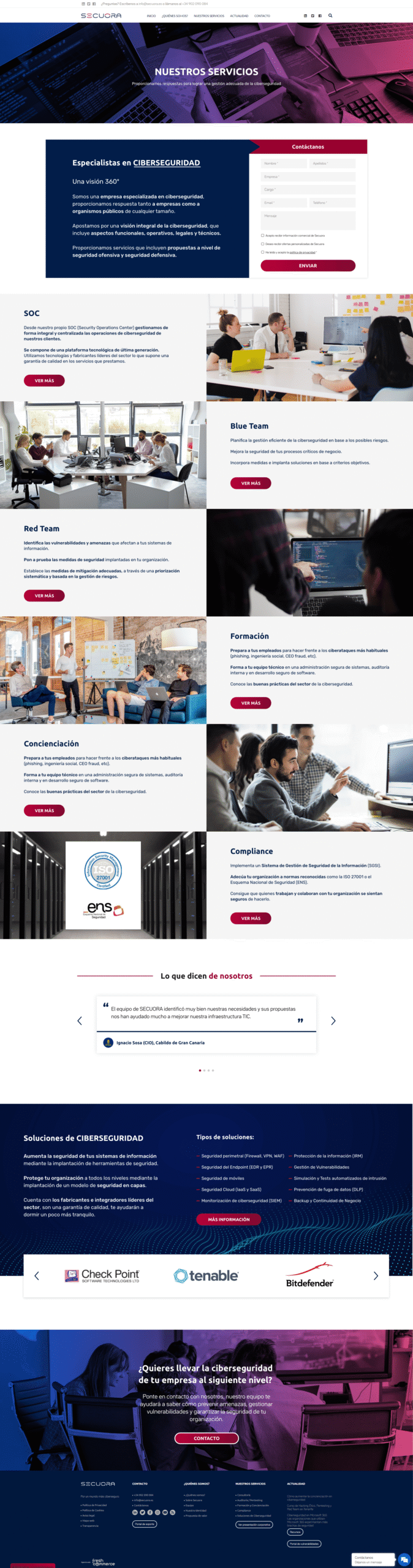 El resultado es una web actual, moderna y atractiva, con degradados dinámicos e imágenes que refuerzan el lado humano de la ciberseguridad.
