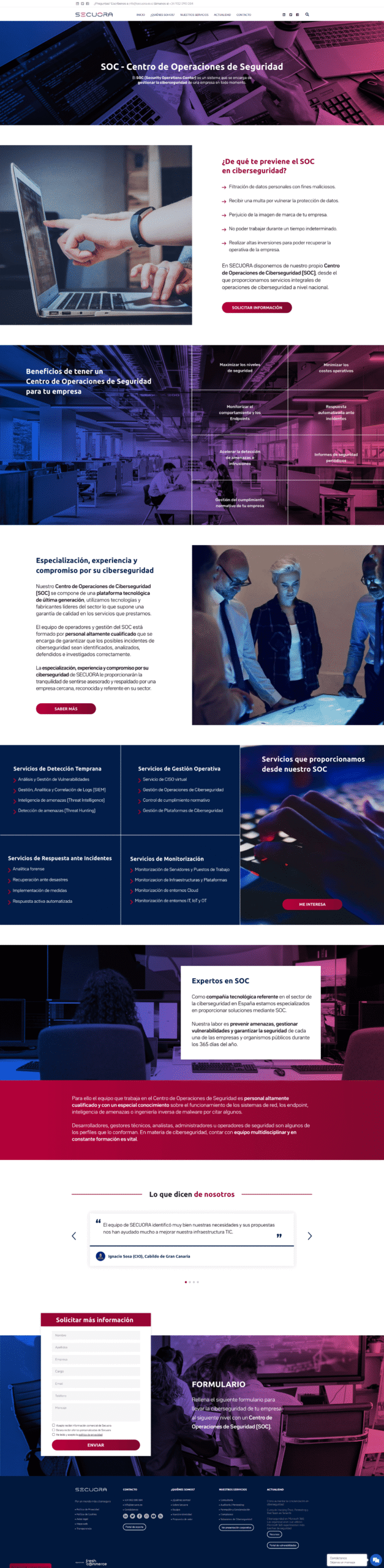 Rediseño de la web de Secuora (actualmente parte de OneCyber)